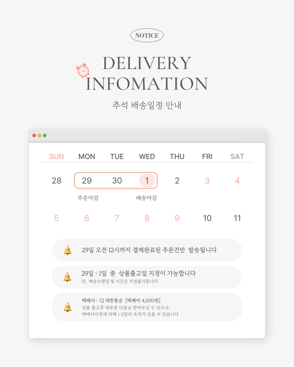 3. 퀵 배송시, 위 내용의 [예약양식 + 퀵 받아보실 주소] 까지 남겨주세요